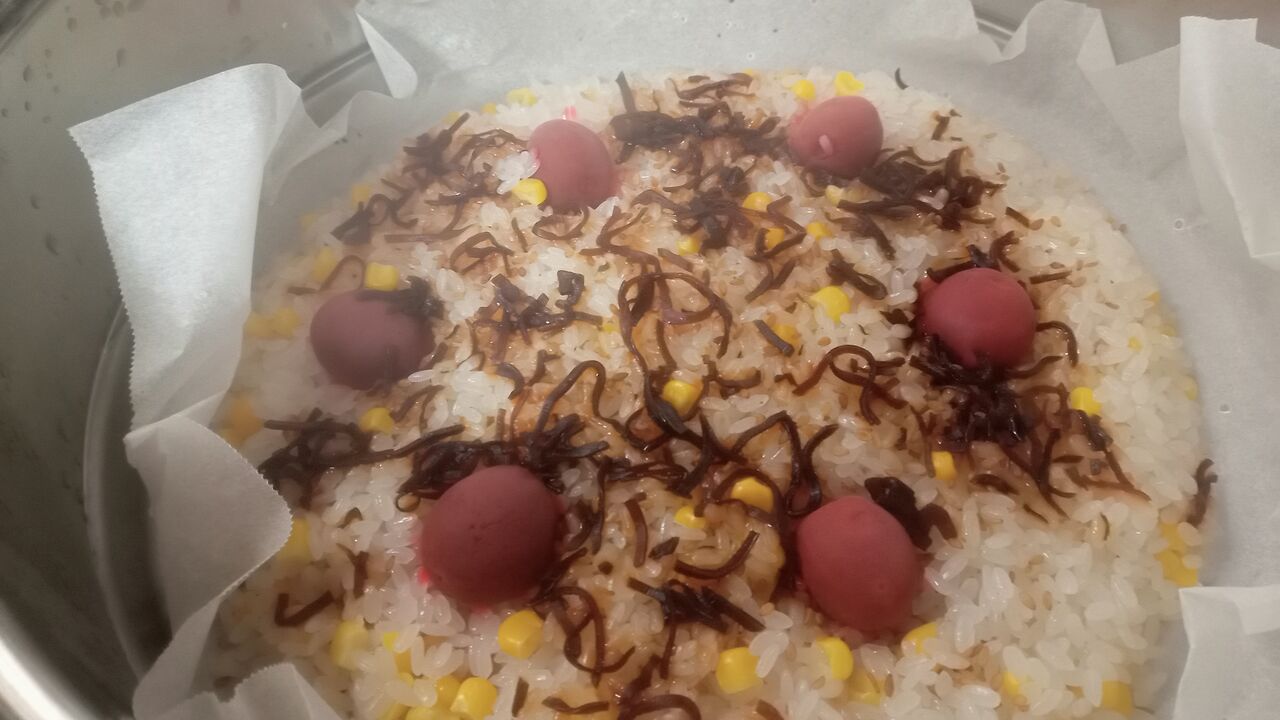 私は得意の中華おこわではいつもクッキングシートを使って25分で蒸し終わり