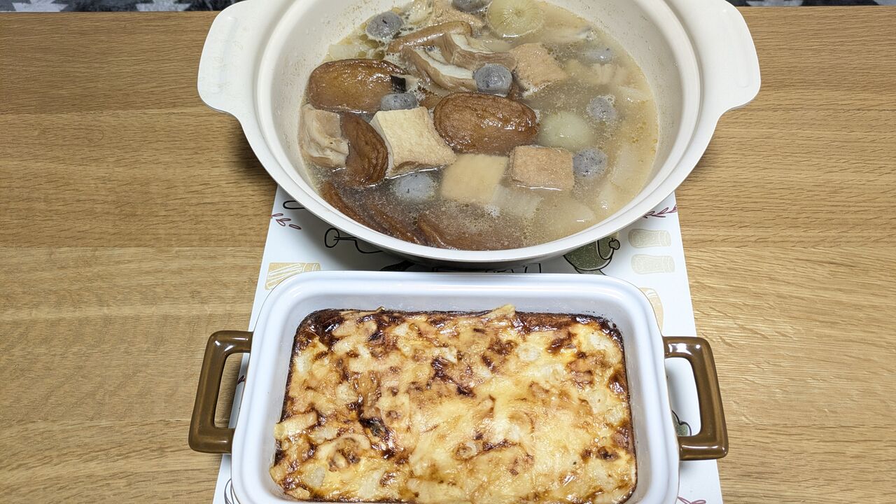 2日目のおでんと長芋&明太子のグラタン(組み合わせがどうなん??)