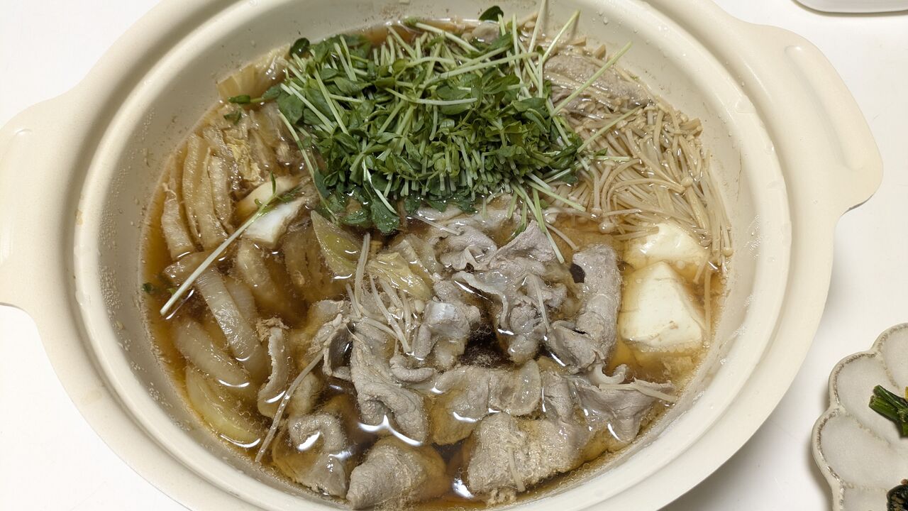 家にあった野菜と豚肉と創味つゆでお鍋を作りました