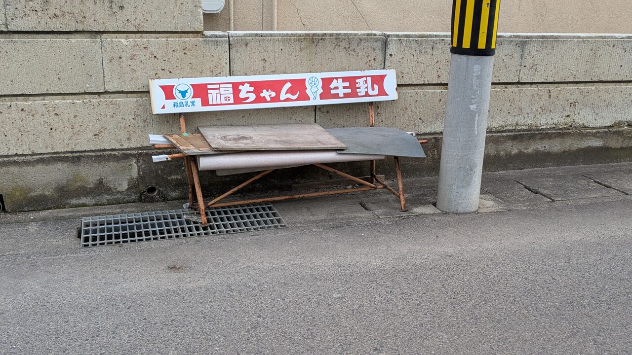 レトロな看板のついたベンチを発見しました