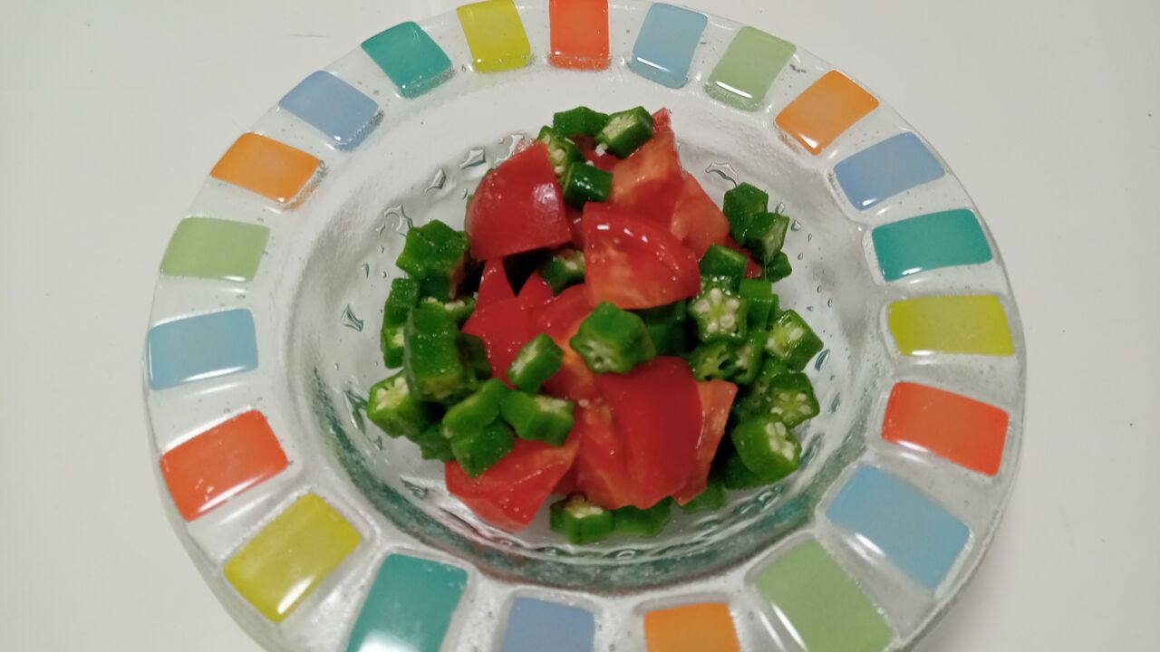 茹でたオクラとトマトを混ぜただけ~