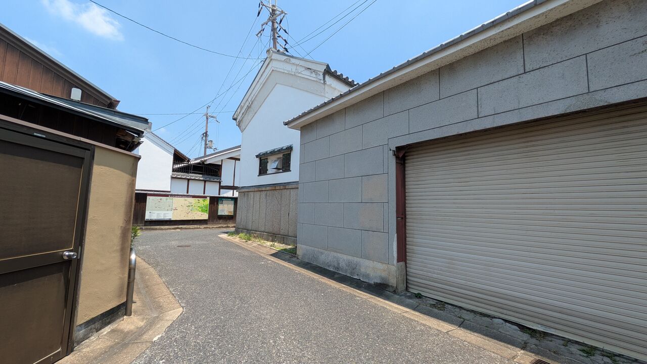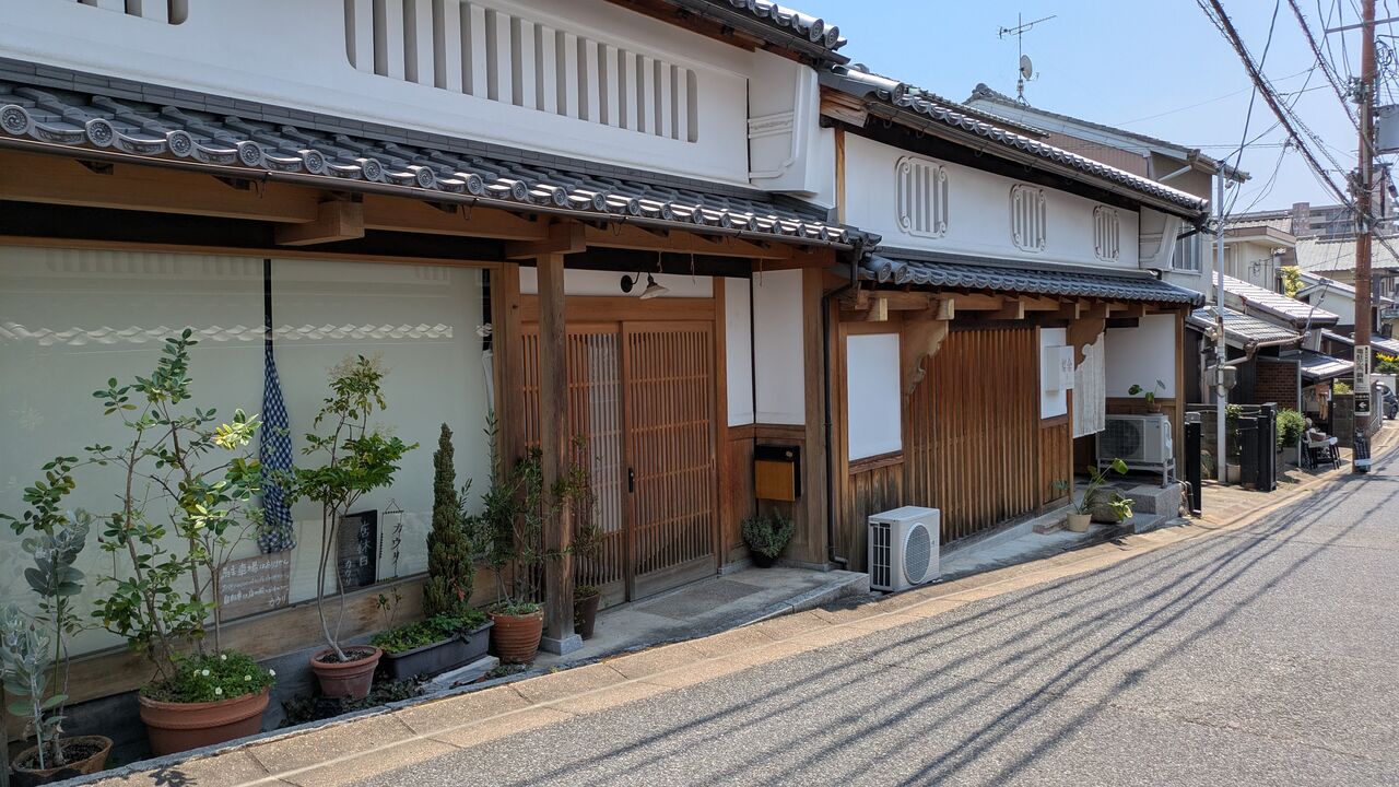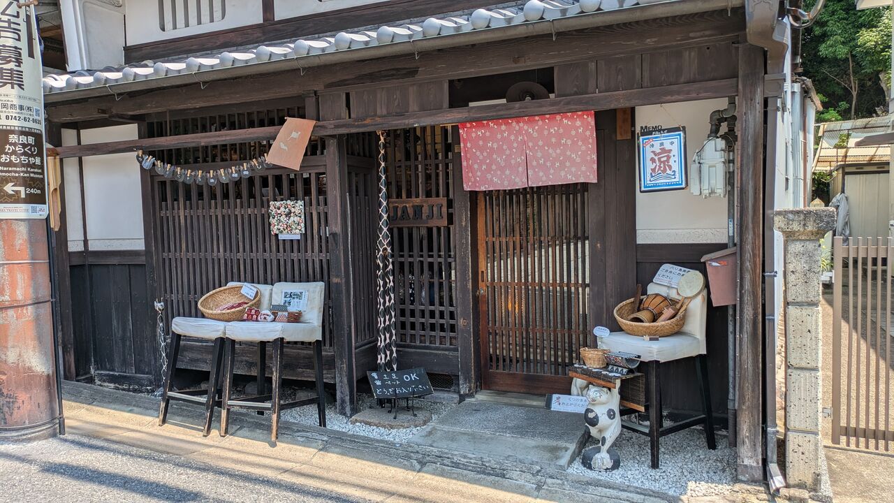 奥に見えている「吉田蚊帳」はならまちふきんや蚊帳のれんを製造されているお店で
