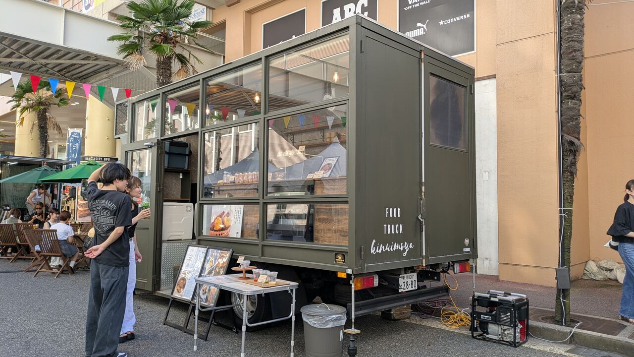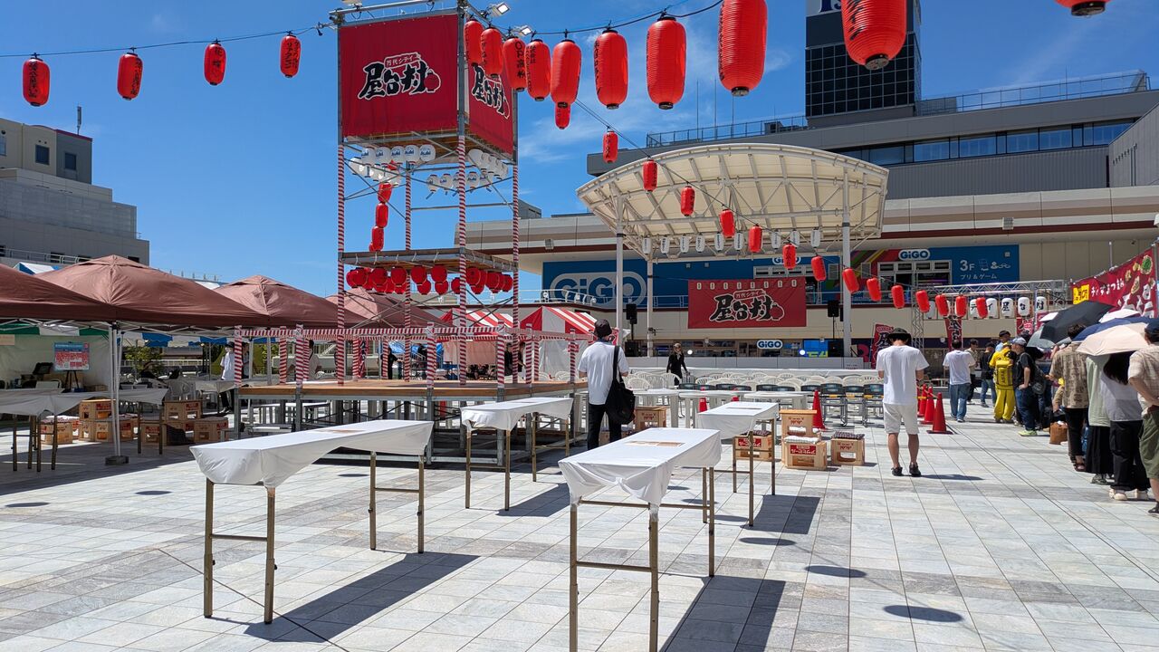 この日の目的は、バスセンター2階の広場でのせんべろです