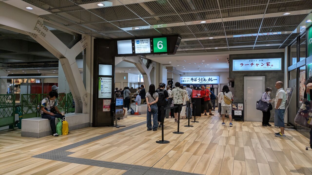 行列はあの有名な「バスセンターのカレー」待ちで、立ち食いのテーブルがあります