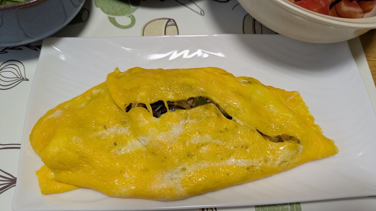 前日のチャプチェの残りをオムレツにしました