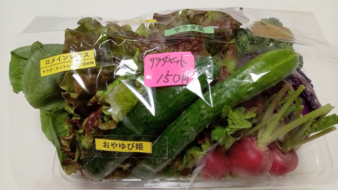 その後に寄ったPAで地元の農家さんのサラダセット150円を買いました