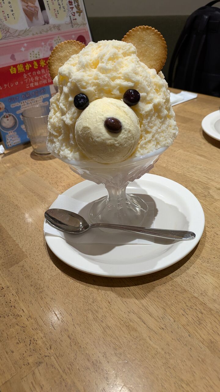 で、食べようとしたらお隣の若い女性がオーダーされたWhite Bearに目が釘付けになり