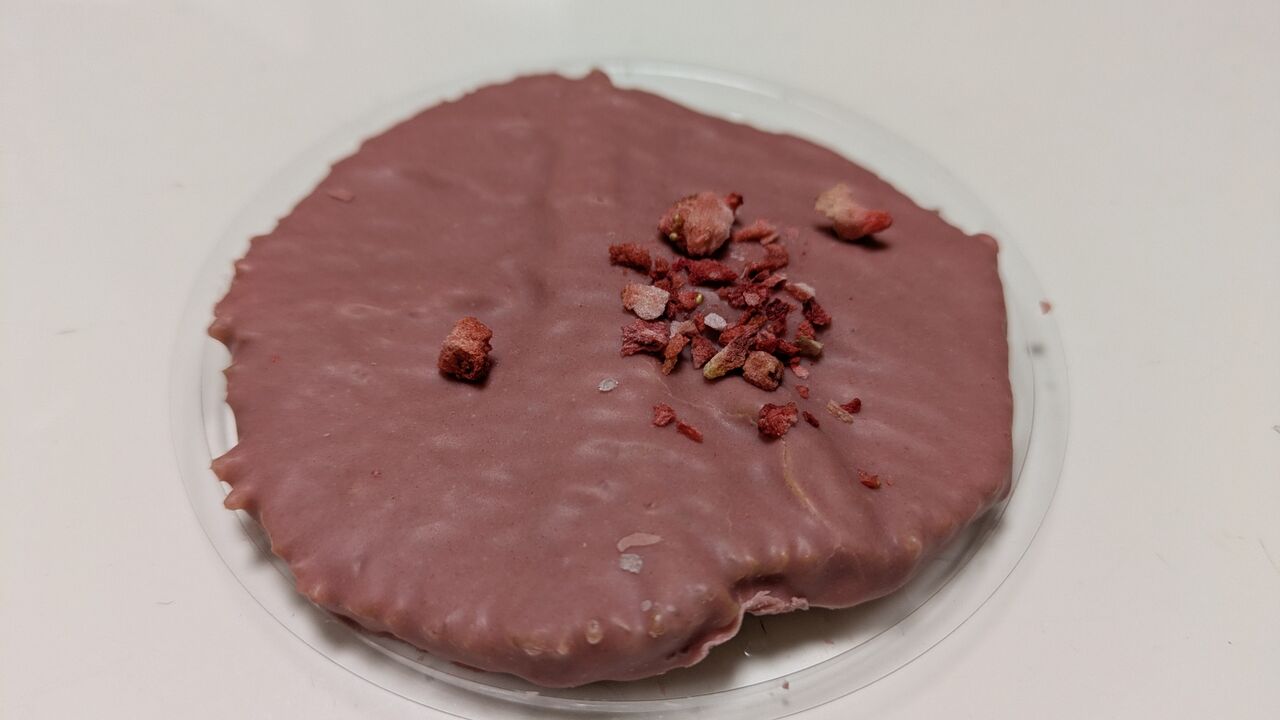 中身はドライ苺がトッピングされていて、コーティングのストロベリーチョコも濃厚で