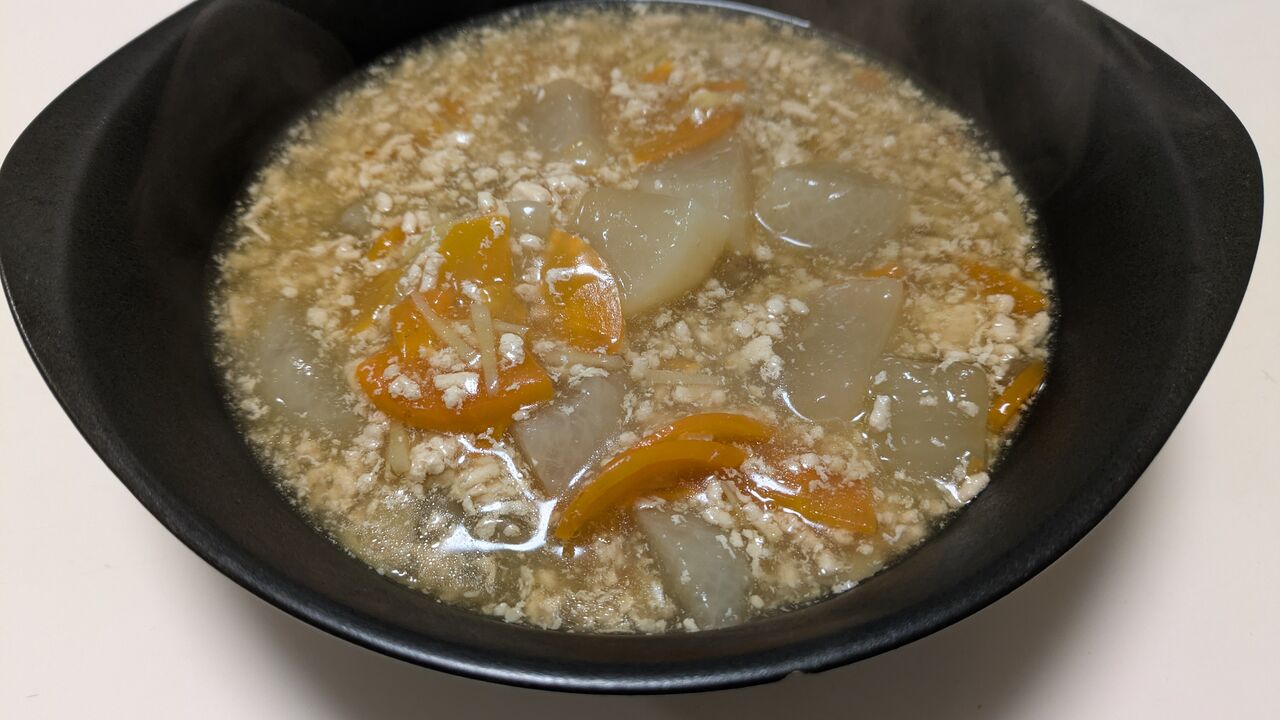 残った鶏ミンチを使って、大根・人参の鶏あんかけ煮込み