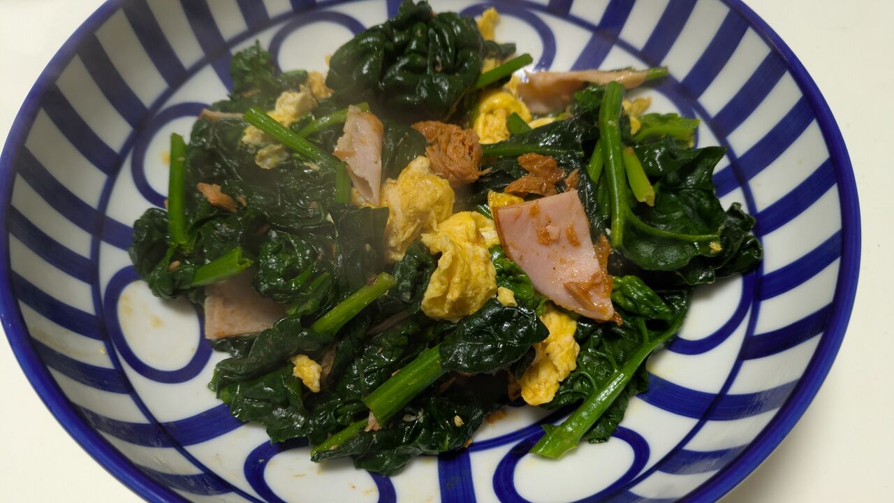 ほうれん草とハム・卵の炒め物に唐辛子ツナを足したら美味しかったです