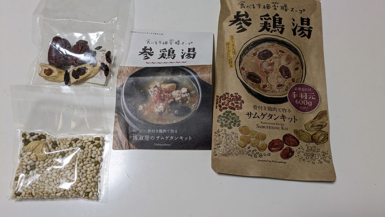 簡単にできる参鶏湯キットをいただいていたので手羽元を買って来て作りました