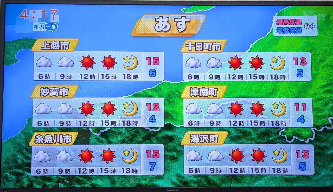 これは新潟県が南北に長く非常に面積が広いので、ひとくくりで予報ができない