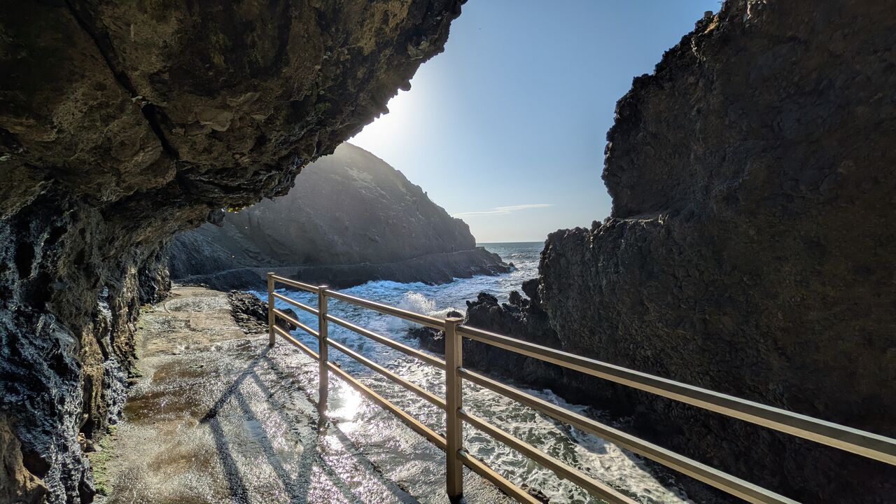 大波が来ても、滑ってこけても海へ真っ逆さま間違いなしです(苦笑)