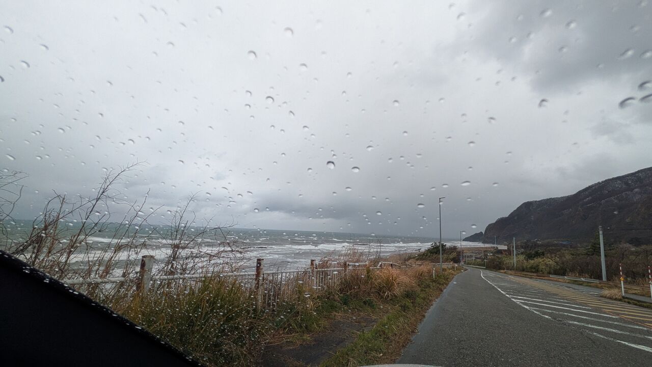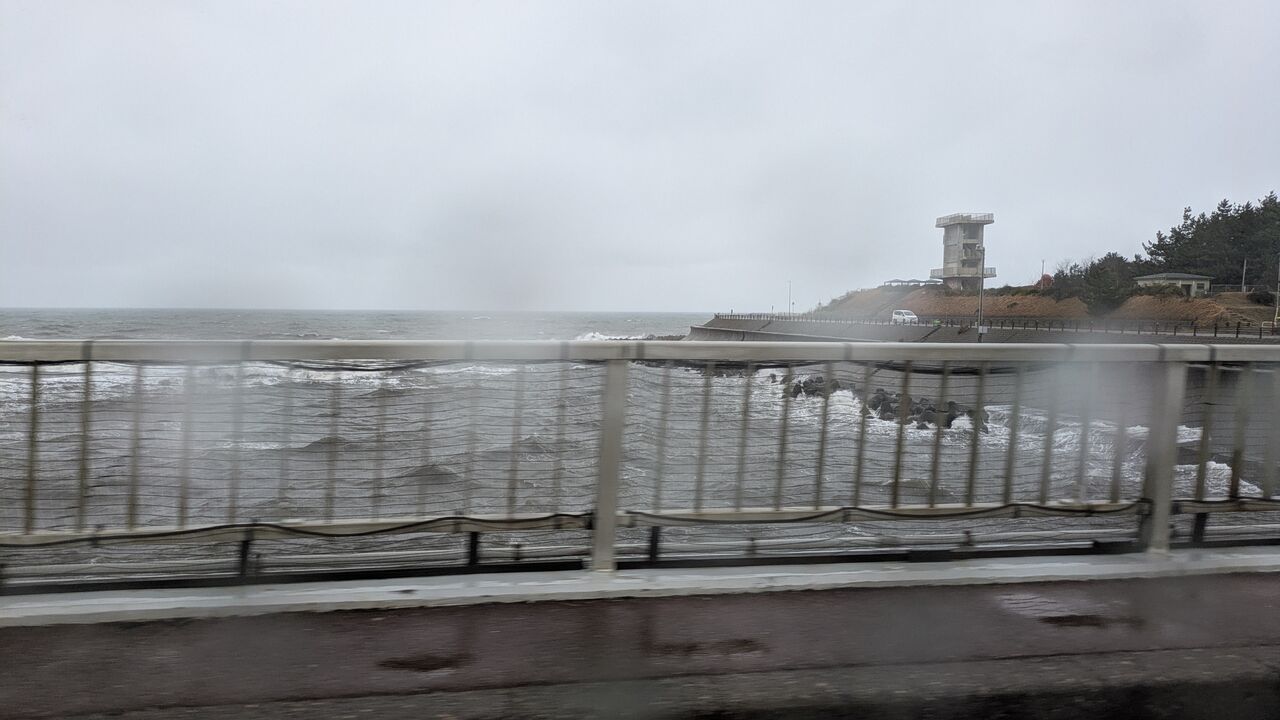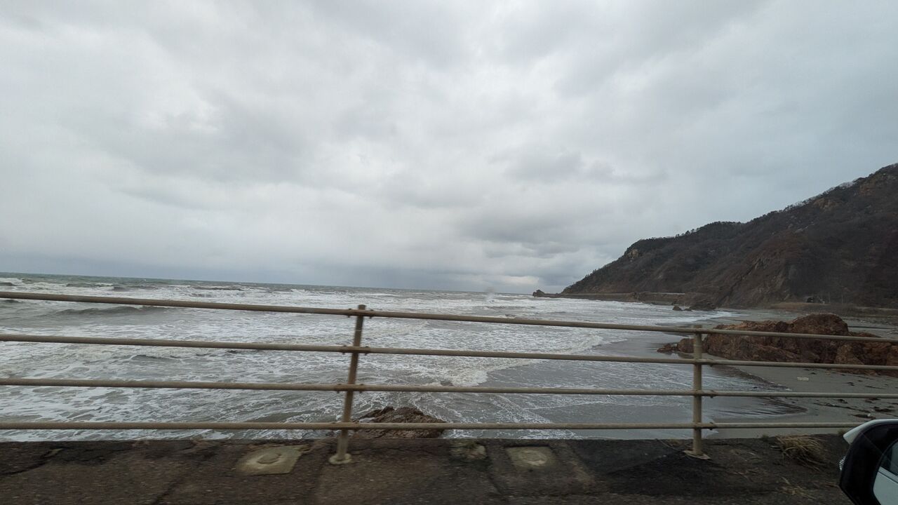 少し平らな場所で写真をパチリ♪(真冬まではいかないけれど、やはり波が怖い感じ)