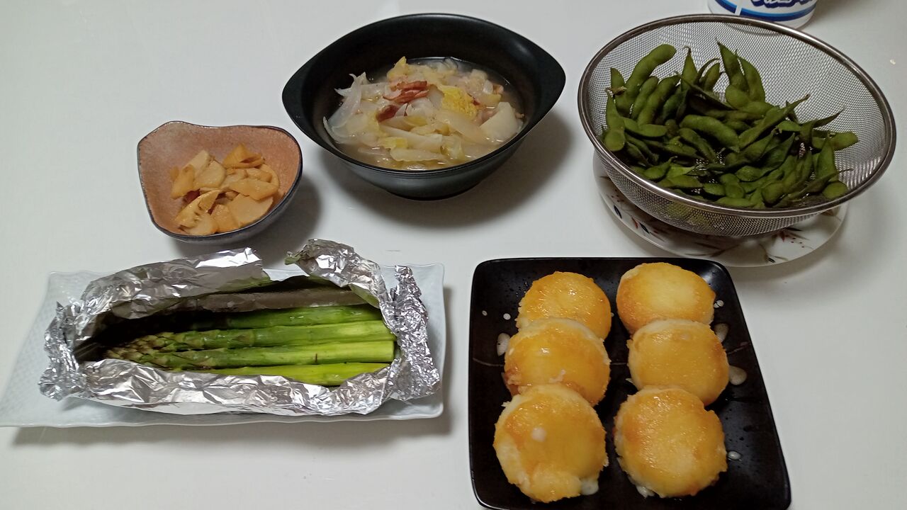 菜っ葉・水煮たけのこ・枝豆をいただいて再び冷蔵庫がパンパンに
