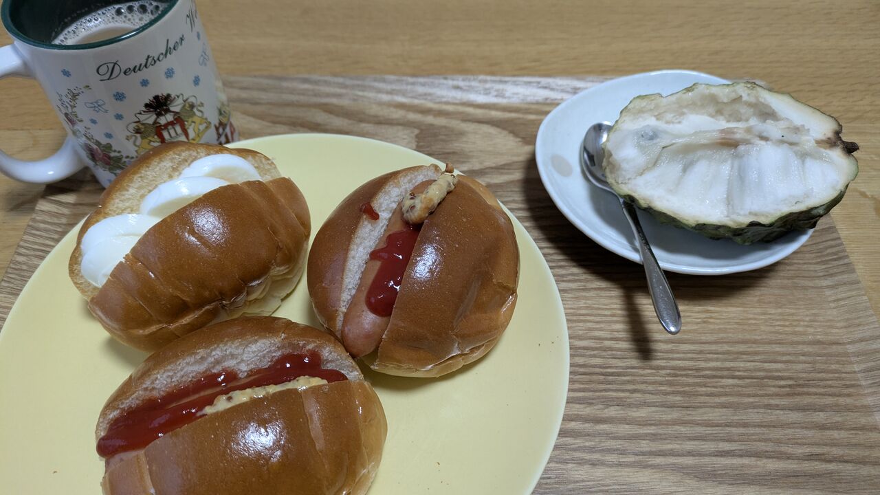 朝食はパンと沖縄のアテモヤ