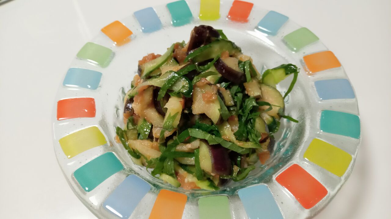 茄子は塩でもんで洗ってから大葉を混ぜて