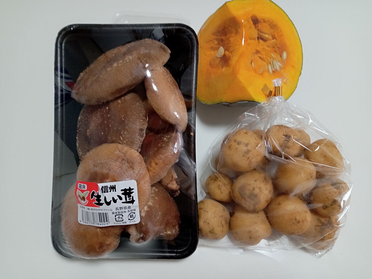 とても大きな椎茸と美味しそうな南瓜、新じゃがです。