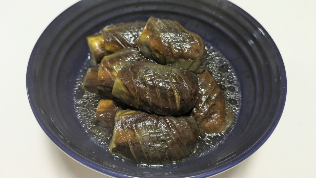 茄子をいただいたので揚げ焼きにしたあと炊きました