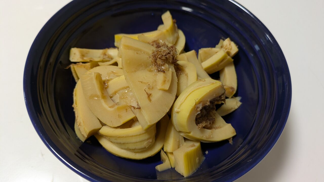 冷凍してあった筍を土佐煮にしましたが、友人に味付け(砂糖を入れるがポイント)して