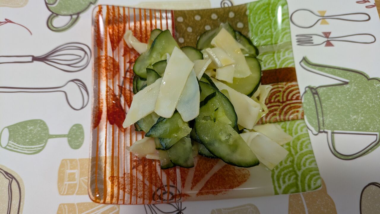 普段は胡瓜ではなくセロリですが、ずっと高騰中なので胡瓜で代用しました