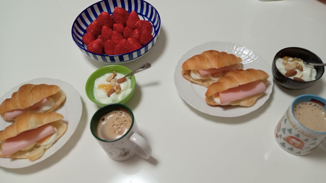 この日は休日なのでゆったりした気分で朝食作り、クロワッサンサンドにしてみました