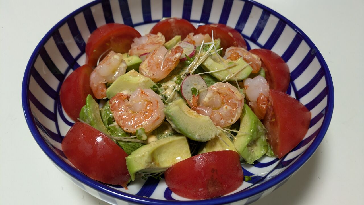 ブロッコリースプラウト・レタス・アボカド・海老・トマトのサラダ