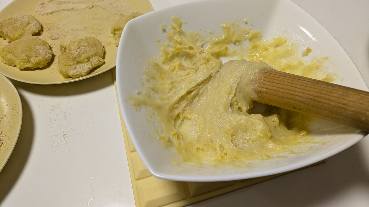 厚めにむいたさつまいもとお餅をチンして砂糖と水少々を加えてつぶして混ぜ