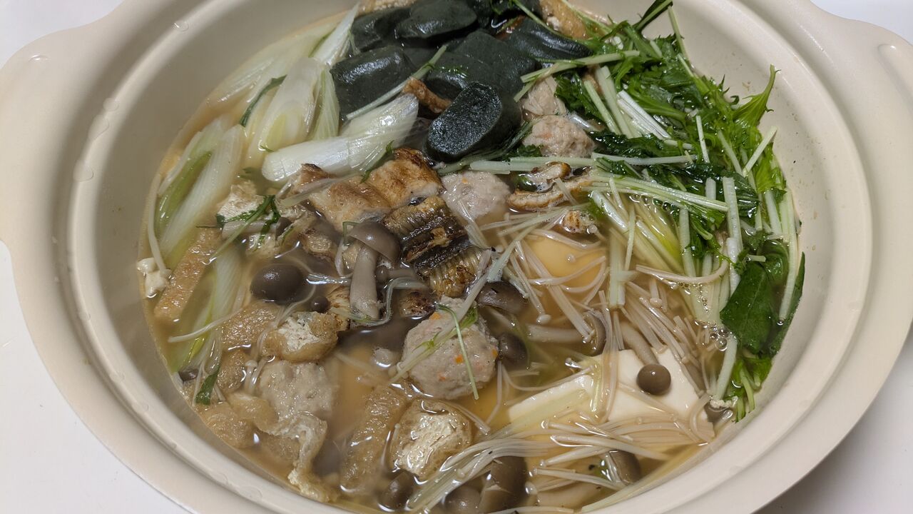煮てしまった後ですが、大阪名物うどんすきで、焼き穴子と鶏だんご・油揚げから