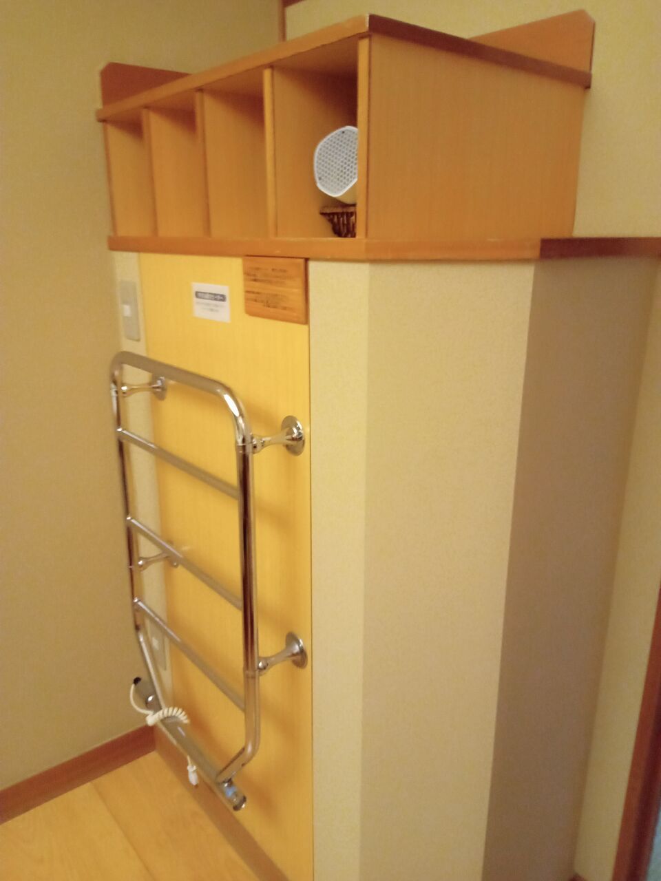 タオルをかけてスイッチをONにするとパイプが温まり乾燥できます。