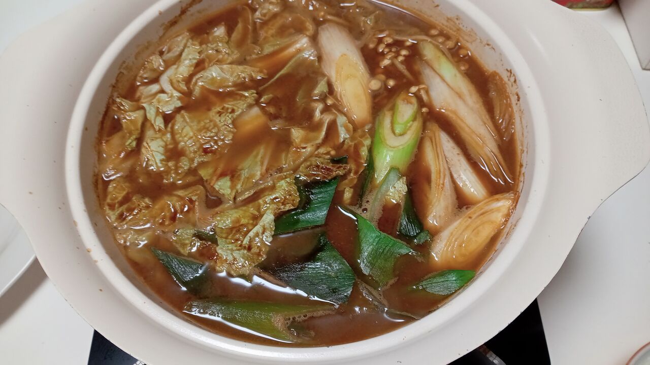 田舎で買ってきたぼたん鍋用の味噌で豚肉のお鍋をするととても美味しいです