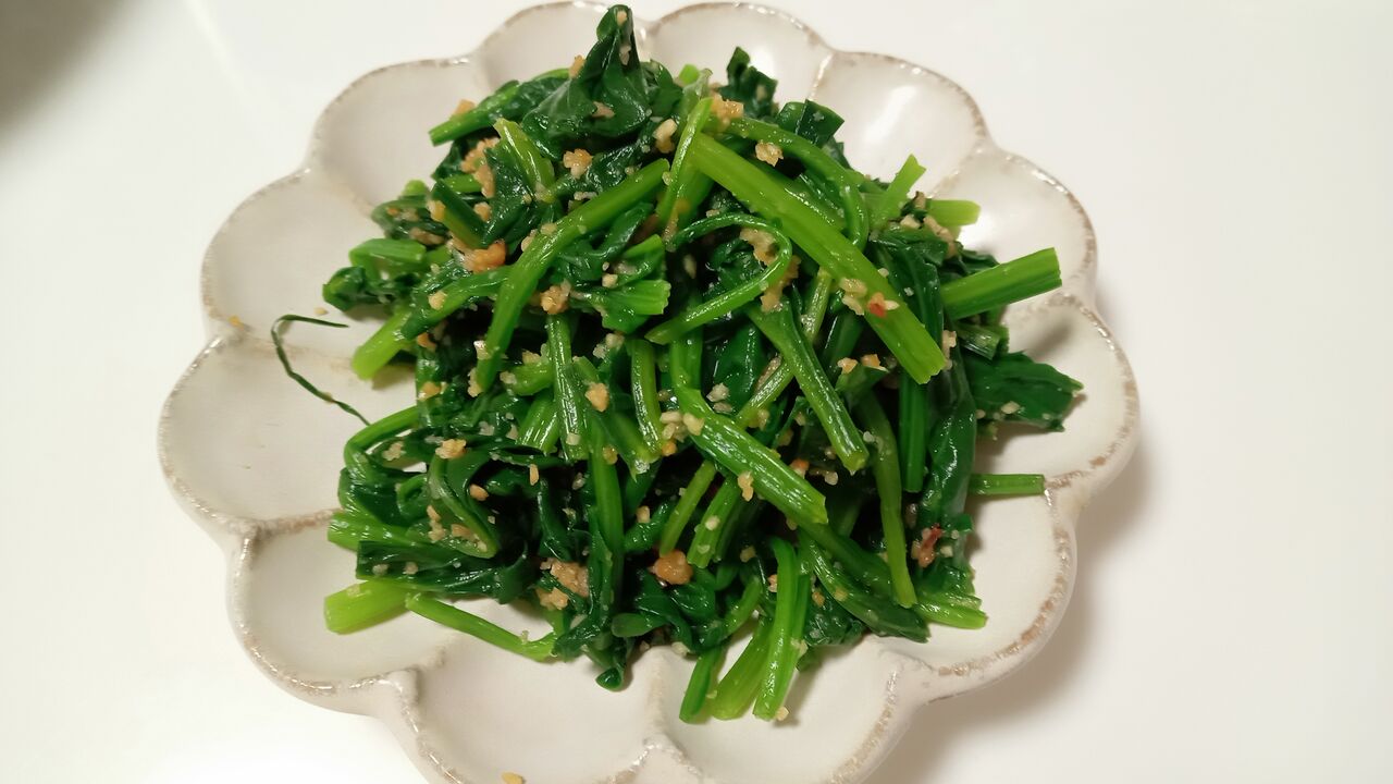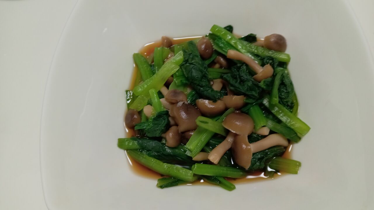 小松菜としめじのおひたしには柚子胡椒もアクセントに入れました
