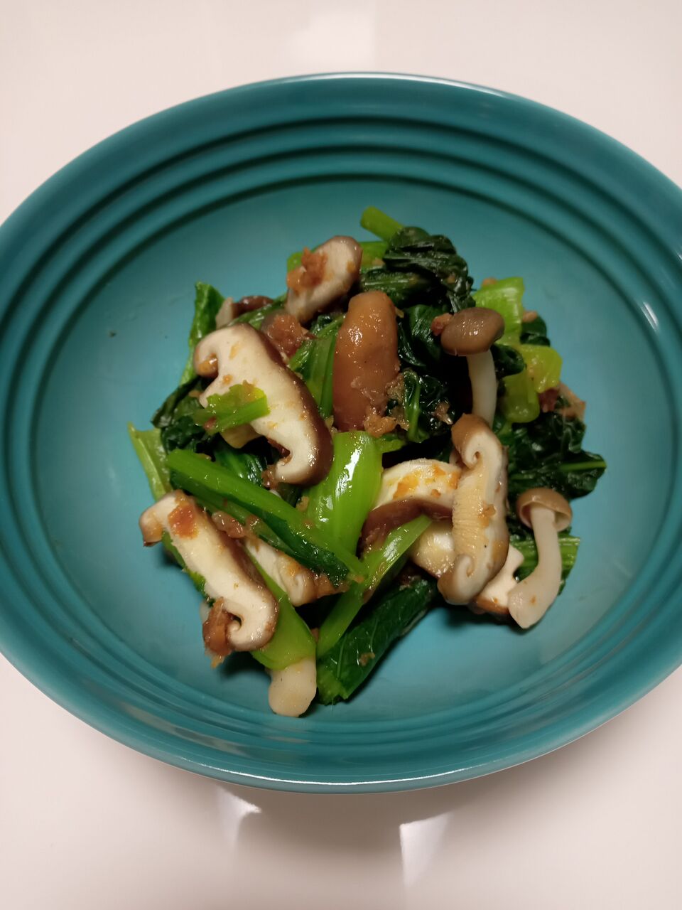 しめじ・椎茸、小松菜を別々にレンチンしてめんつゆとかつおぶしを