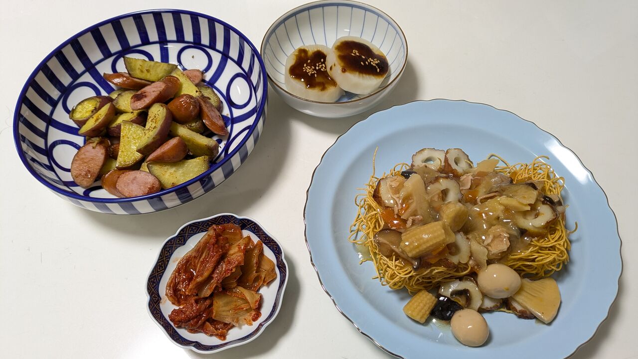 皿うどん、キムチとともに