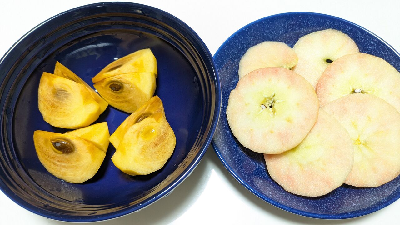 デザートは柿と長野県の中が赤いりんご