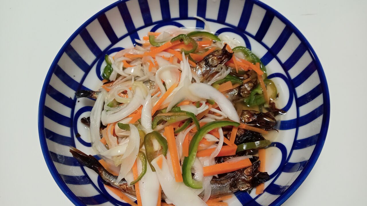 ししゃもを焼いて簡単南蛮漬け