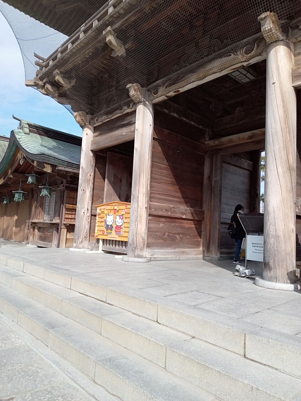 随神門を入ったところ 絵馬をかけるところがキティちゃん