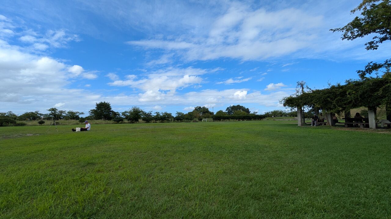 見学はお好きなところでどうぞ、という広~い芝生です