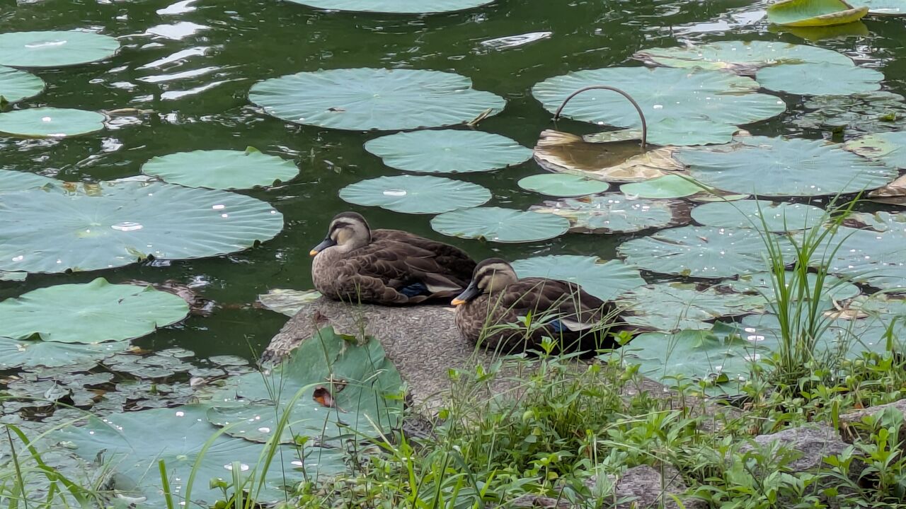 鴨が仲良く羽を休めていました