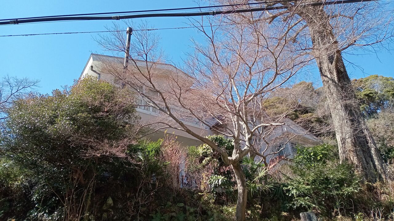 鎌倉高校前に到着し、有名な坂を上っていきますが、右側にある急な坂道を見て