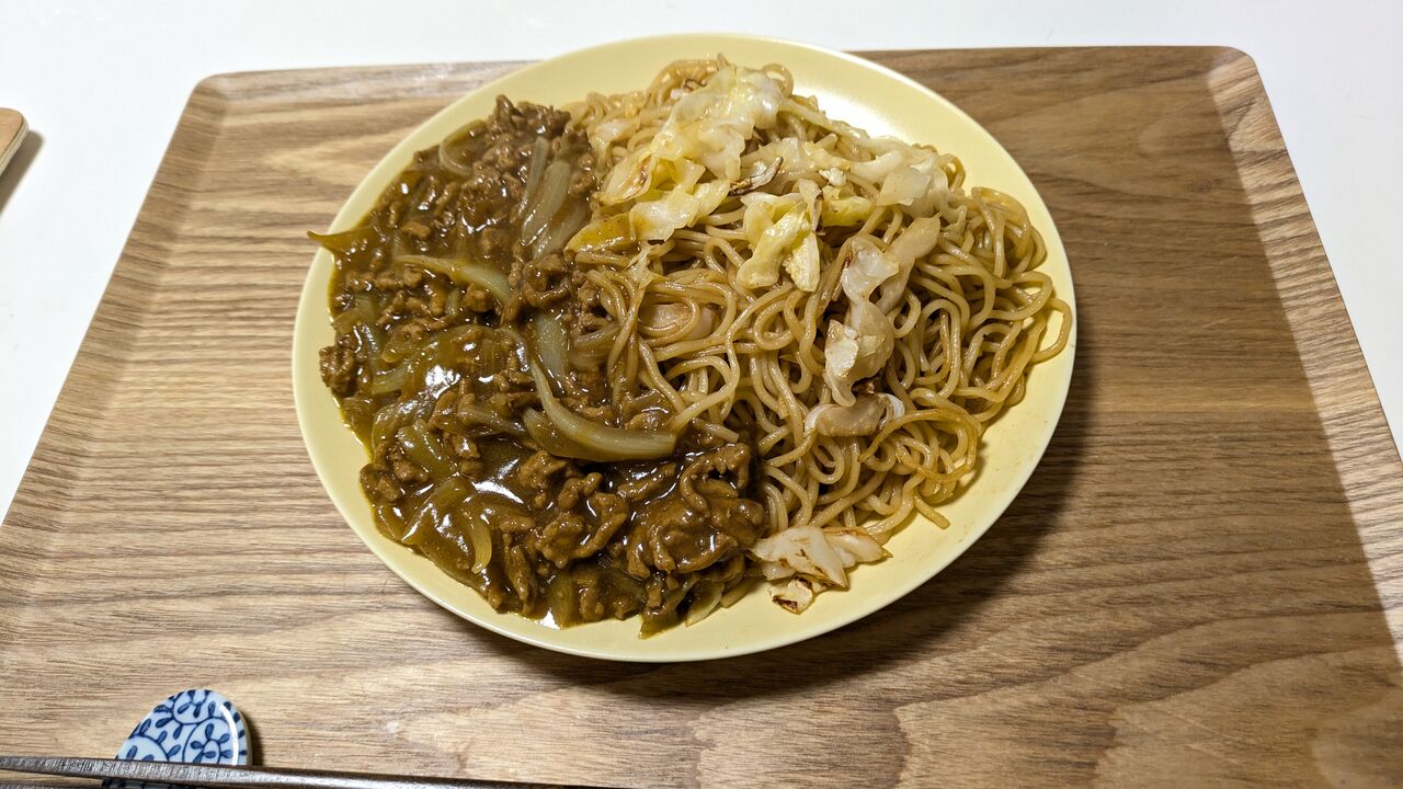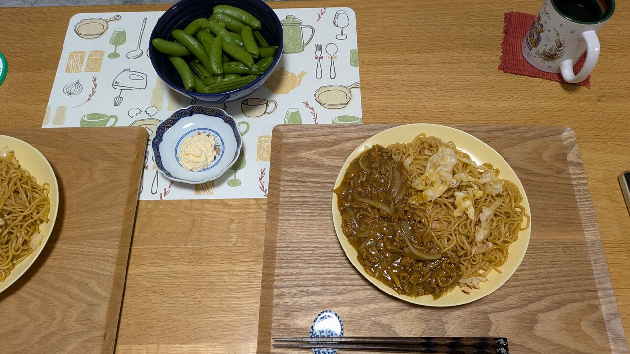 焼きそばはとんかつソースを使わずウスターソースだけでいつもより薄めの味付けです