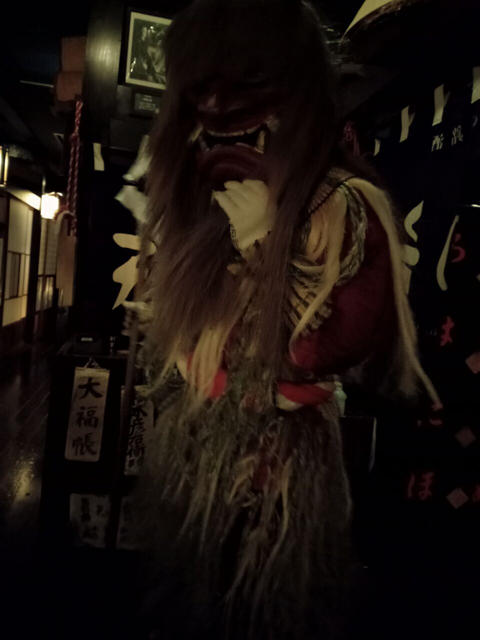 お座敷での民謡ショーの後は、各テーブルにナマハゲがやって来ました。