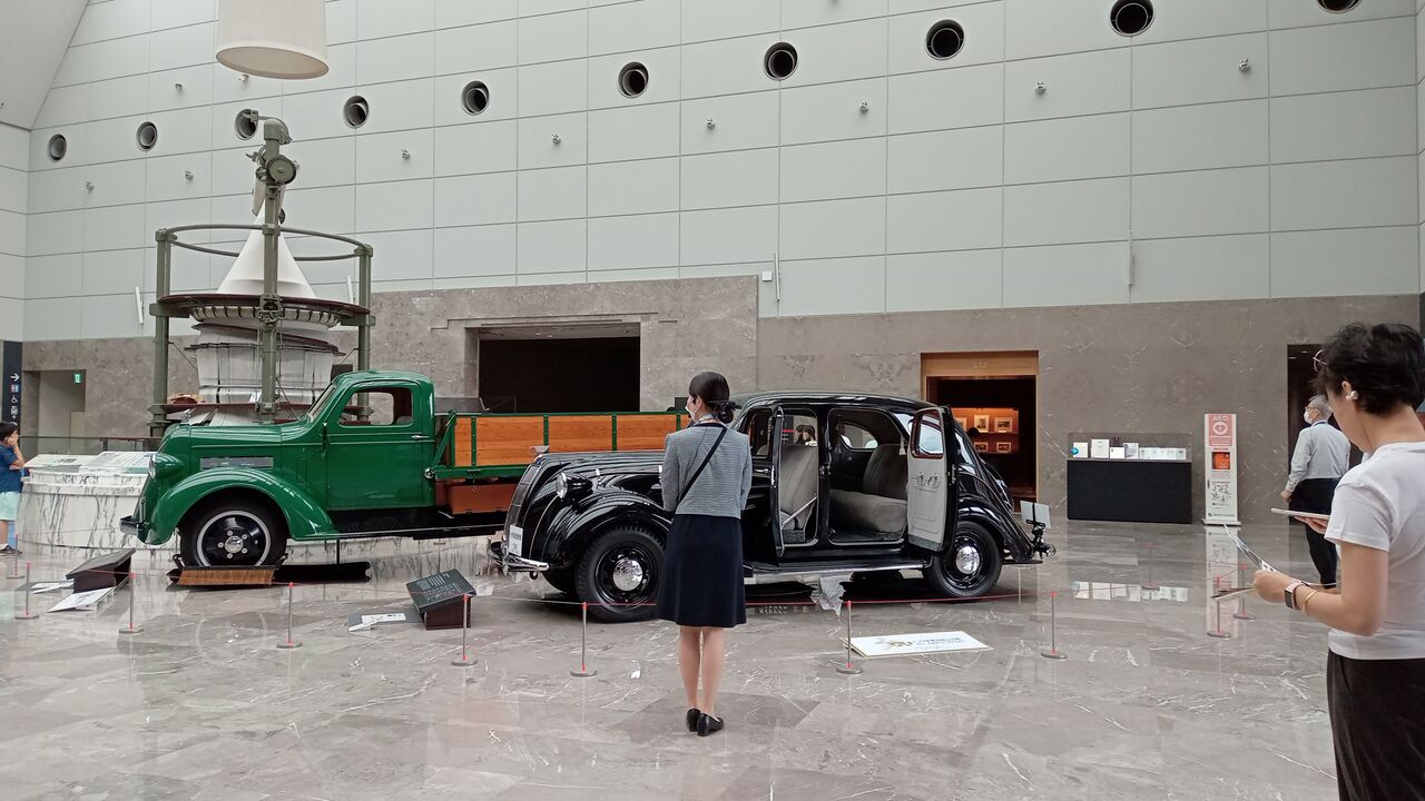 自動車館に移動する途中にロボットが展示されていて未来の乗り物みたいでした