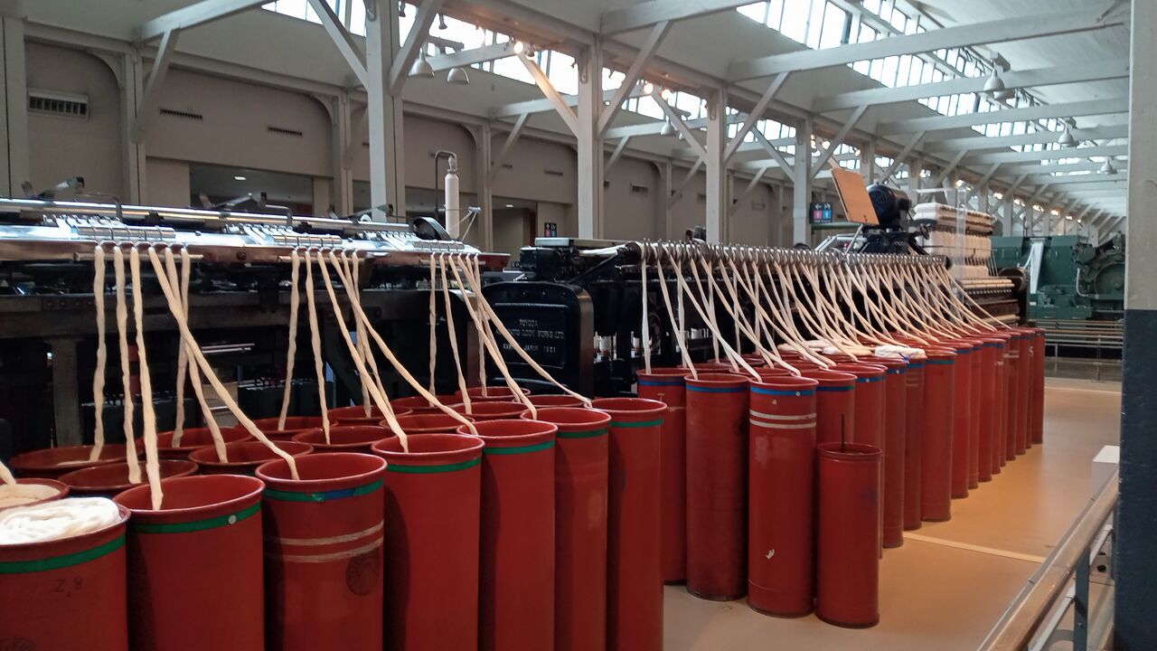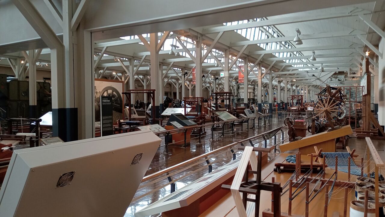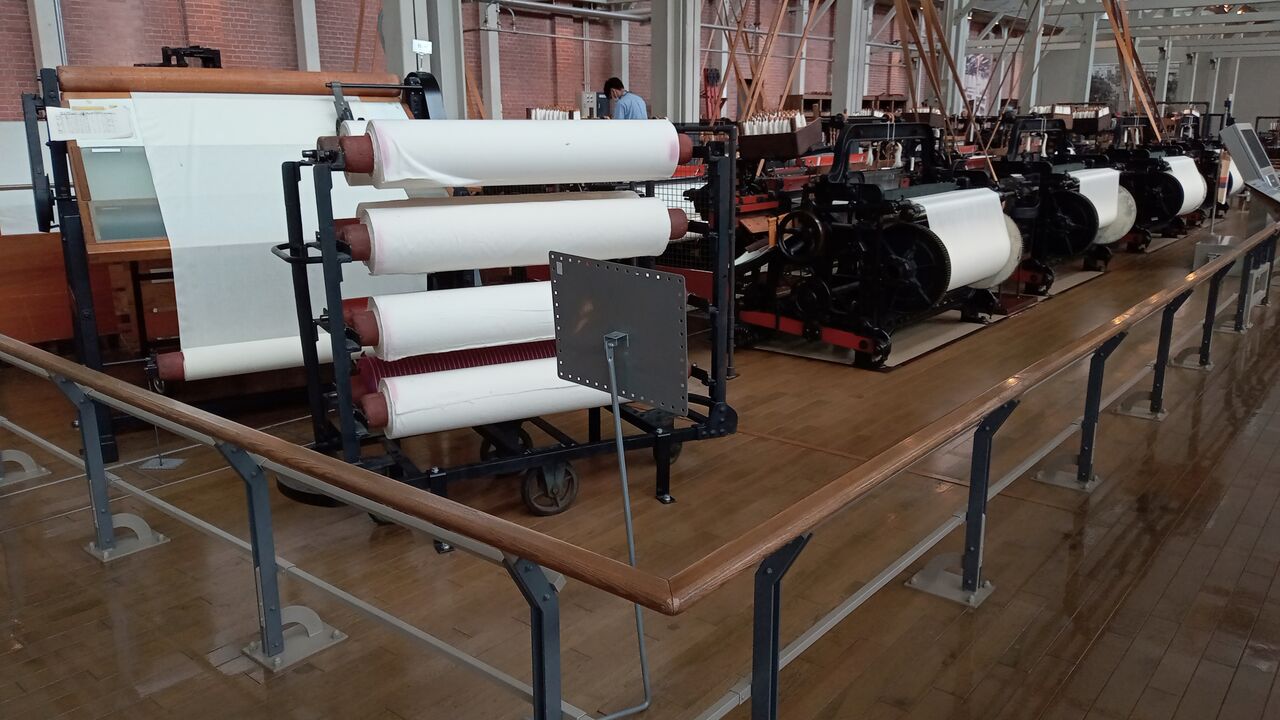 入口を入ると、広い建物内に多くの繊維の機械が並んでいます