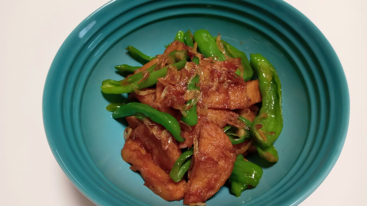 さつま揚げ・ししとう・小海老を甘辛く炒め煮にしました