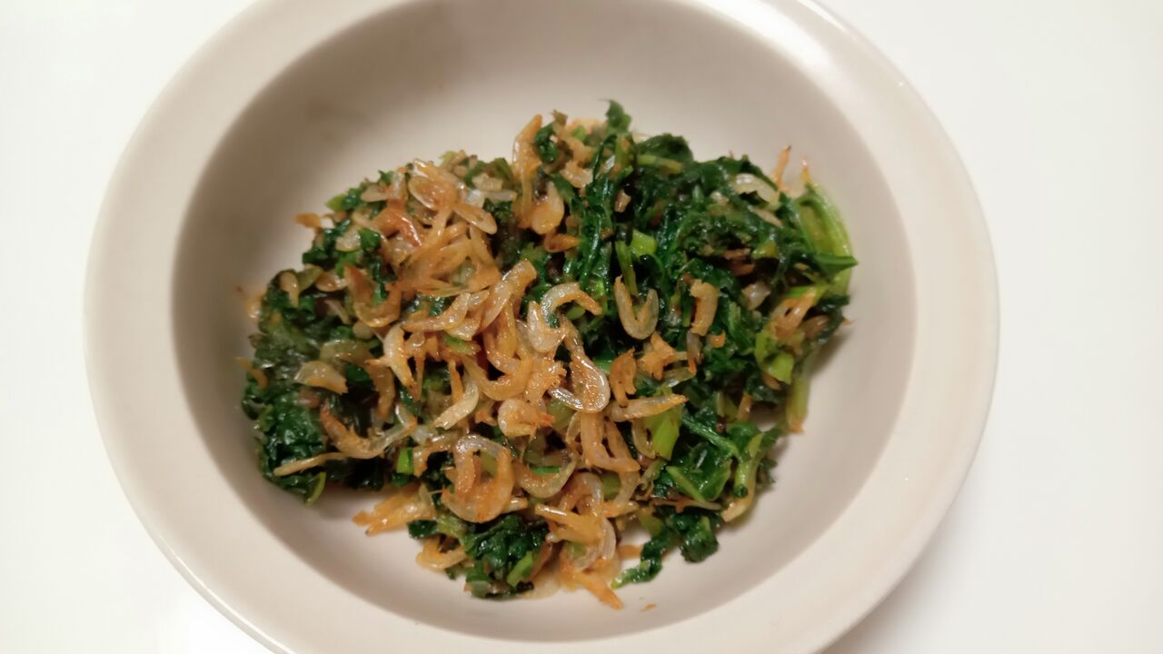 葉は、小海老とかつお節を加えてふりかけにしました(かつお節がいい仕事をしてくれます)