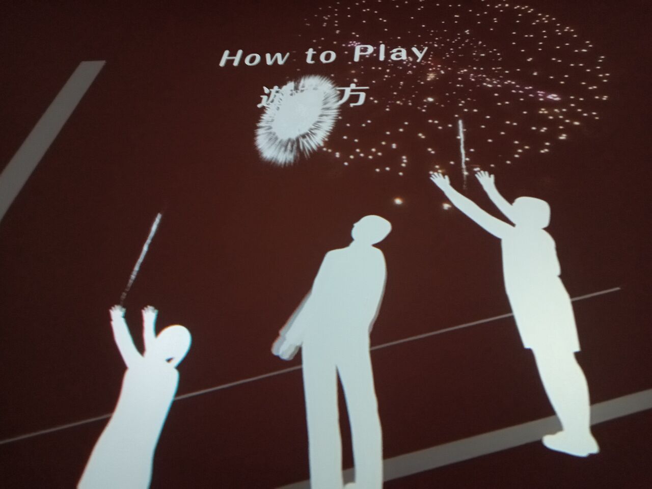 大型スクリーンの前に立って行うチーム対抗ゲームもありました。